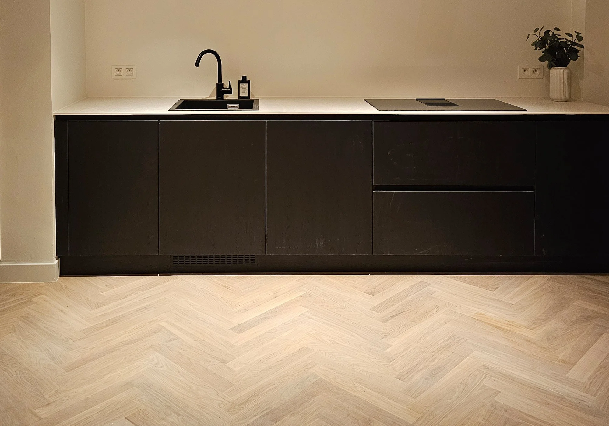 Onze vakmensen plaatsen de vloer volgens afspraak, netjes en met oog voor detail.